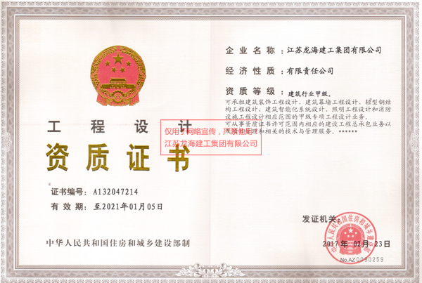 2月23日,龍海建工迎來特大喜訊——住房城鄉(xiāng)建設(shè)部發(fā)布了“關(guān)于核準(zhǔn)2017年度第二批建設(shè)工程企業(yè)資質(zhì)資格名單的公告”,江蘇龍海建工集團(tuán)成功取得了建筑工程總承包特級(jí)資質(zhì),實(shí)現(xiàn)了企業(yè)又一次具有里程碑意義的歷史性跨越——建筑工程施工總承包特級(jí)資質(zhì)、行業(yè)設(shè)計(jì)甲級(jí)資質(zhì)這兩項(xiàng)業(yè)內(nèi)最高資質(zhì),一次申報(bào)成功,榮幸地躋身至國家建筑行業(yè)第一方陣。成為了常州市第一家建筑工程總承包特級(jí)資質(zhì)的公司。